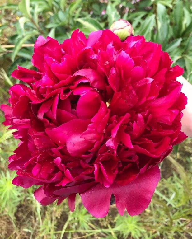 Адольф Руссо - старинный сорт пиона, продолжает радовать глаз своими чудесными роскошными цветками. Они полумахровые, пушистые, окрас пламенный, красный с вишневым отливом, до 15 см в диаметре. Очаровательные золотистые тычинки спрятаны между многочисленными лепестками. У взрослых растений махровость прекрасных цветков более выражена.