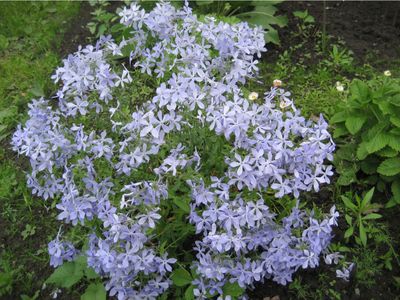 Светло-голубой, стебли тонкие гибкие ползучие, образует рыхлую дернинку, цветущие побеги поднимаются вертикально, цветки собраны в редкие щитки, обладают чудным нежным ароматом, цветёт очень рано в мае-июне.