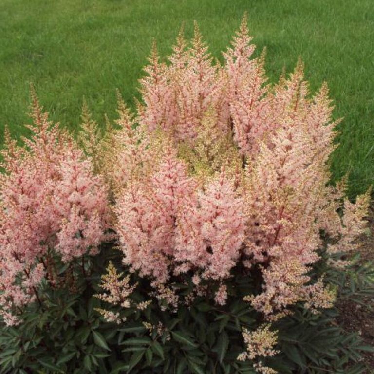Лук эт Ми - новый сорт астильбы с характерным, очень узнаваемой формы соцветием и очень приятным теплым розовым цветом.