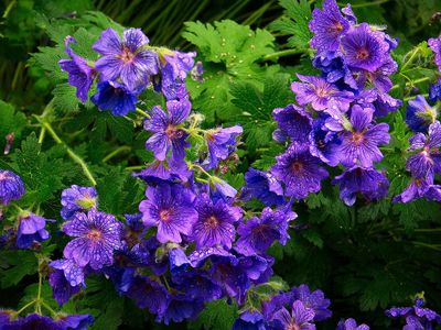 Цветки сине-фиолетовые с темными прожилками.Куст мощный, при благоприятных условиях образует заросли.Листья ярко-зеленые, округлые, опушенные, с приятным ароматом.