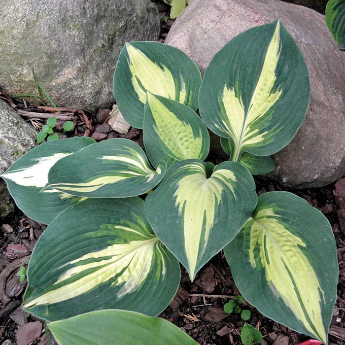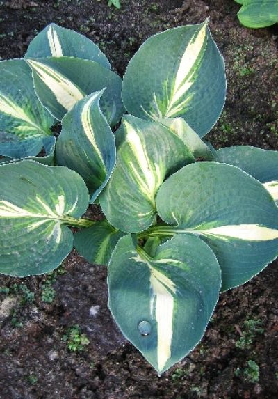 Аккуратная хоста, высотой около 30 см и примерно такая же в ширину. Листья округлые с заостренным кончиком, лист пестрый: кремово-белый центр, ярко-зеленые полоски вокруг и сине-зеленая широкая кайма. Листья довольно крупные, 13*13 см. Цветки почти белые. Предпочтает тень, полутень.