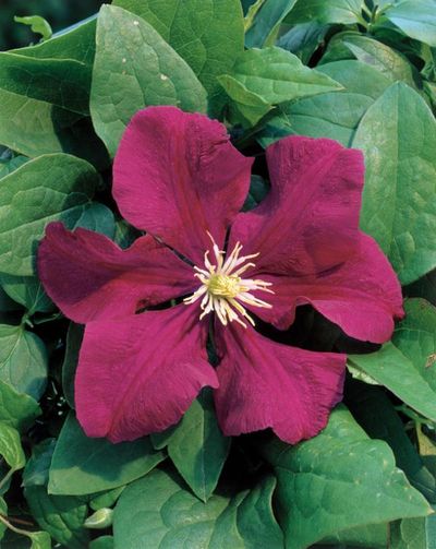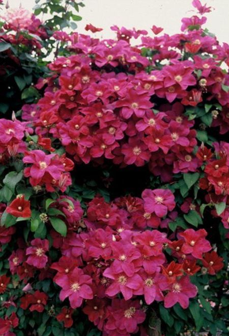Сорт клематиса Руж Кардинал относится к группе Жакмана.