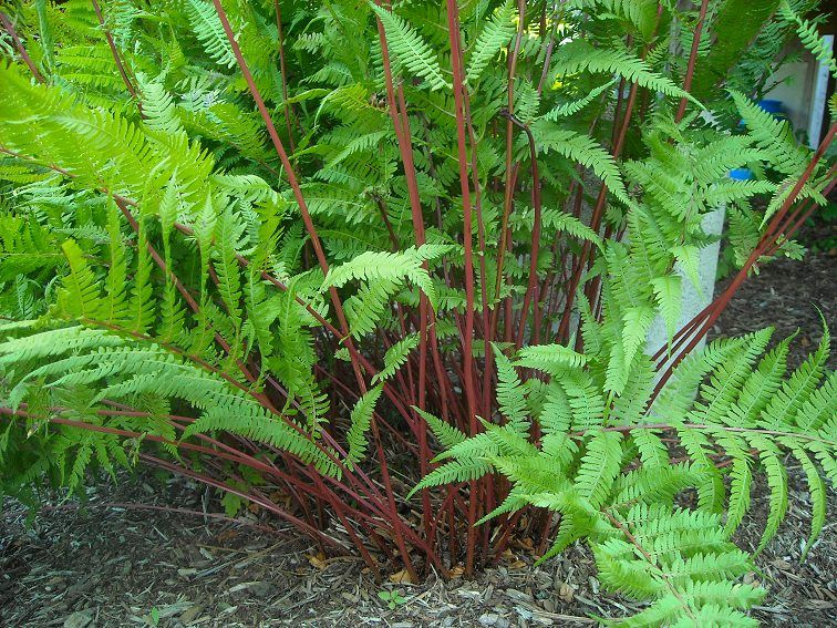 Очень декоративный и привлекательный сорт папортника с черешками красного цвета и ажурными, зелёными листьями.