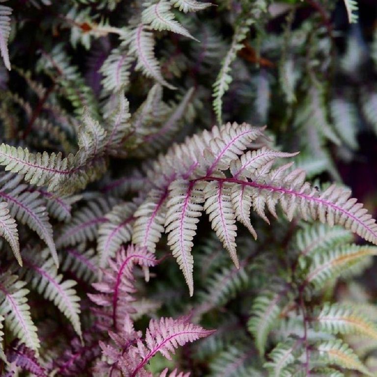 Листья ажурные, перистые, серебристо-серые с пурпурным рисунком и легким блеском.