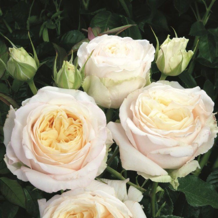 Роза Май Герл Кремово-белая чайно-гибридная роза с крупными, густомахровыми цветками в старинном стиле. Цветки появляются в небольших соцветиях, долго не увядают и чудесно контрастируют с темно-зеленой блестящей листвой. Куст округлый, ветвистый. Классический аромат розового масла.