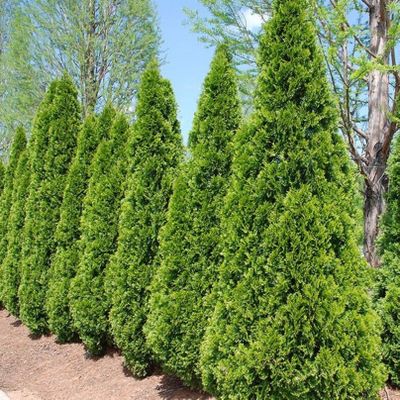 Туя Харрикейн - это новый сорт. Крона узко коническая, плотна, равномерная. Побеги густо ветвятся, сильные, плотно прижатые друг к другу, короткие. Хвоя крупная, чешуевидная, темно - зеленая круглый год. После 10 лет может достигать высоты 2,5 метра. Рекомендуется для живых изгородей.