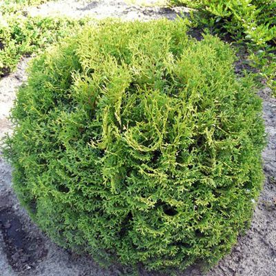 Туя западная Тайни Тим - это очень красивая карликовая форма. Высота 0,5 -1м, диаметр кроны 1 - 1,5 м. Крона шаровидная, короткие и густые ветки. Кора красноватая или серовато-коричневая, отслаивающаяся. Хвоя чешуйчатая, темно-зеленая. В 10 лет высота растений этой формы 30 см, диаметр кроны 40 см. Растет медленно.